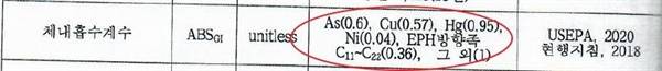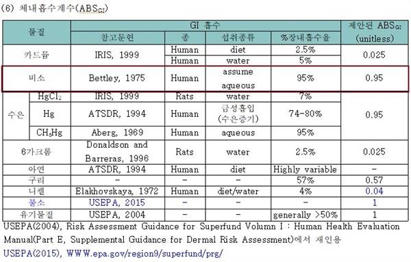 | ▲ 국내 토양오염물질 위해성평가 지침 - 체내흡수계수(ABSgi) 기준 |