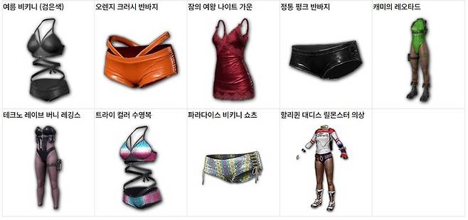 PUBG는 뉴진스 캐릭터 5종을 대상으로 착용이 제한되는 '캐릭터 얼굴 외형 착용 제한 아이템 리스트 19종 또한 공개했다. 목록에는 메이저 트러블 상의, 군용 핫팬츠, 레오파드 여름 비키니 등의 아이템들이 포함되어 있다.