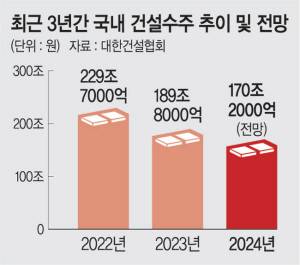 건설업 불황이 진입 국면일 수 있는 만큼 앞으로 파급효과가 더 거세질 수 있다는 우려도 나온다. 대한건설협회에 따르면 2022년 229조7000억 원에 달했던 건설수주는 지난해 189조8000억 원으로 급감했다. 올해는 이보다 더 쪼그라든 170조2000억 원으로 예상된다.
