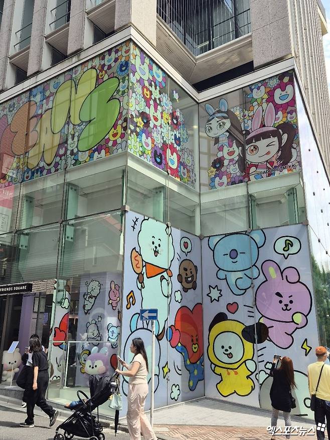 팝업스토어는 지하 1층과 지상 2층, 두 공간으로 나눠서 운영되고 있다. 라인프렌즈 스퀘어 시부야의 지하 1층에는 인터랙티브 미디어 체험 공간과 무라카미 다카시 콜라보 제품존이 마련됐으며, 지상 2층에서는 히로시 후지와라와 협업한 제품들을 구매할 수 있다. 특히 미디어 체험 공간에서는 팝업스토어만을 위한 13분짜리 영상이 상영돼 팬들의 마음을 사로잡았다. 실제로 팬들은 상영되는 영상을 관람하며 핸드폰 카메라에 담기 바빴다.
