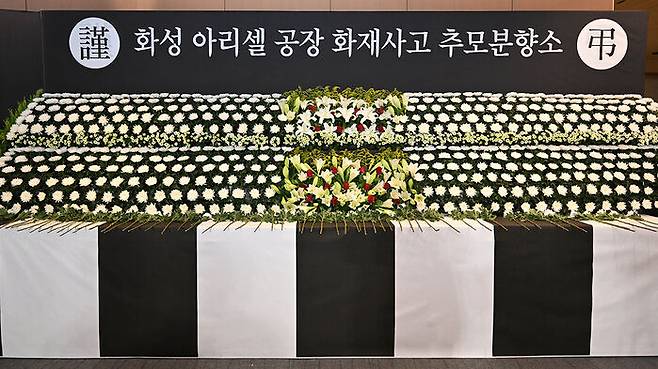 ▲ 화성시청에 설치된 아리셀 공장 화재 추모 분향소
