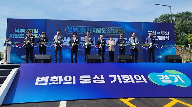 경기 파주시 적성면 가월리에서 연천군 백학면 두일리를 연결하는 지방도 371호선의 확장과 포장 공사가 완료돼 개통했습니다.