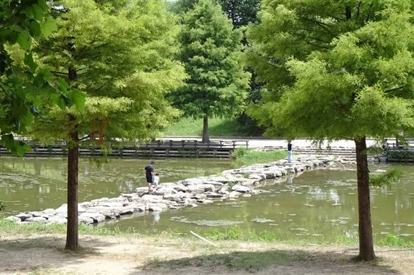 묵직한 노목들이 여름날 빽빽한 그늘을 드리워주어 천연 무더위 쉼터가 된다. 나무 아래 놓인 평상이 더없이 편안하고 아늑하게 보여 쉬어가게 된다. 동네주민들과 관광객들이 평상에 너나없이 모여 앉아 쉬고 있는 모습이 정답기만 하다. 사람과 자연이 어우러져 사는 풍경이 참 아름답고 왠지 모를 감동을 전해준다. 강둑길을 계속 가다보면 담양의 또 다른 명소 숲길 메타세쿼이아 나무들이 여행자를 맞는다.