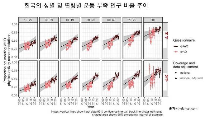 이번 보고서는 163개국의 570만명을 대상으로 한 507개 연구 결과를 종합한 것으로, 전 세계인의 신체 활동 추이를 분석한 최초의 연구다.