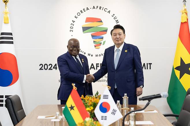 윤 대통령은 지난해 뉴욕을 방문했을 때 아쿠포아도 가나 대통령 부부와 정상 오찬을 했습니다. 올해 서울에서 열린 한-아프리카 정상회의에서도 가나 대통령과 별도로 정상회담을 했습니다.