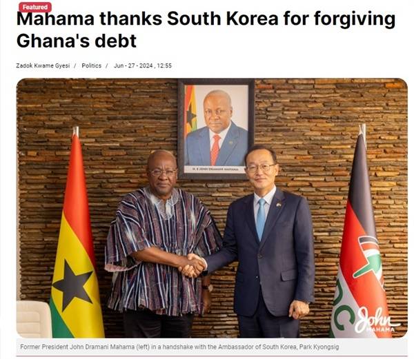 이에 대해 일부 가나 언론은 "Mahama thanks South Korea for forgiving Ghana's debt" (마하마, 가나의 빚을 탕감해 준 한국에 감사)라는 제목으로 관련 소식을 보도했습니다.
