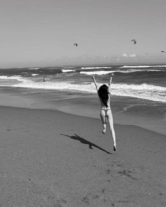 사진 속에서 나나는 머리카락을 길게 늘어뜨리고 갈색 비키니를 입고 있는 모습. 특히 나나는 엉덩이 노출이 돋보이는 비키니로 반전 뒤태를 선보였다.