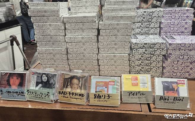 특히 눈길을 끈 건 뉴진스 팬미팅과 관련된 타 가수의 앨범이 함께 놓여있었다는 점이다. 마츠다 세이코, 타케우치 마리야, 바운디, 리나 사와야마 그리고 요아소비의 앨범이 뉴진스 앨범 앞에 자리잡았다.