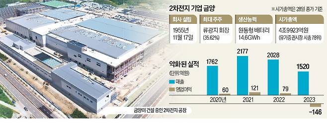 금양은 이 공장에 1조2000억원을 투입해 4695배터리(지름 46㎜, 높이 95㎜) 라인 한 개와 2170배터리 라인 두 개를 구축한다. 완공되면 연간 생산 능력은 14.6GWh(4695배터리 10.95GWh, 2170배터리 3.65GWh)에 달한다. 전기차 19만4667대에 장착할 수 있는 규모다. 금양은 내년 8월에 양산 체계를 구축한다는 계획이다.