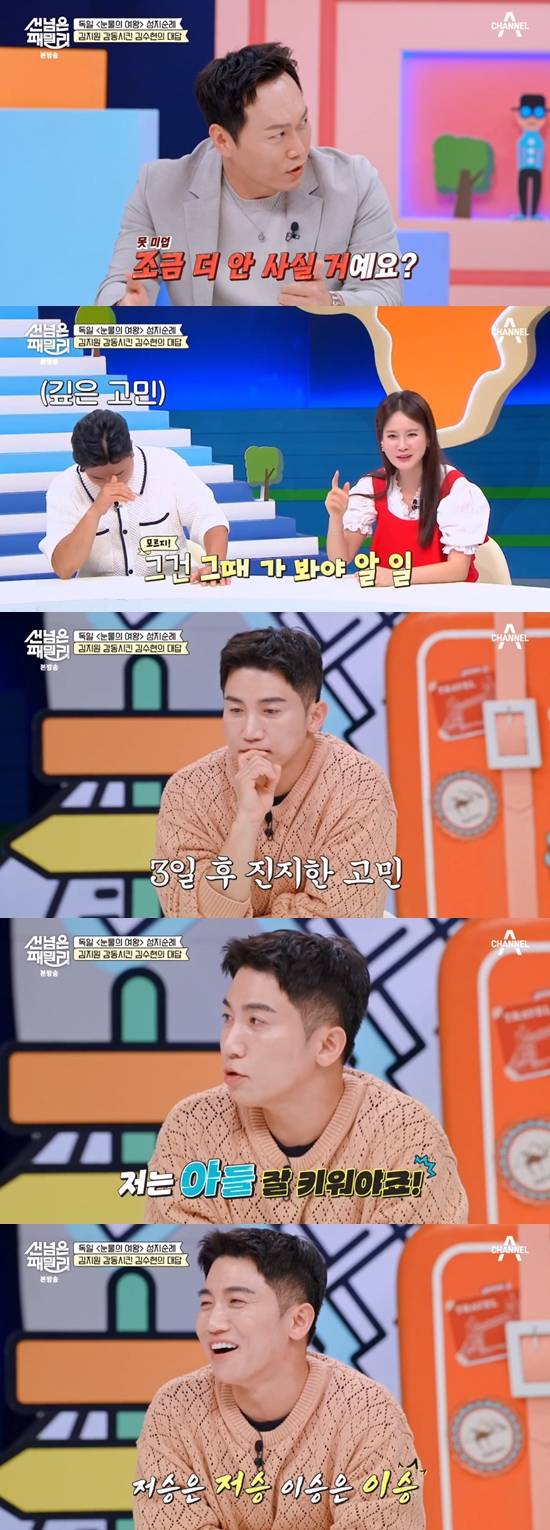 안정환이 "세윤이는 다를 것 같다"고 말하자, 유세윤은 "나는 아들 잘 키워야 한다"고 핑계를 댔다.