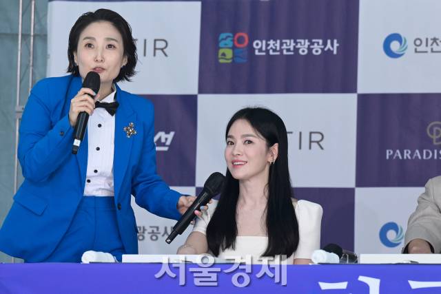 지난 25일 인천 중구 상상플랫폼에서 ‘제3회 청룡시리즈어워즈 핸드프린팅’ 행사가 진행됐다. 이날 현장에는 지난해 열린 ‘제2회 청룡시리즈어워즈’의 수상자들이 자리를 빛냈다. 대상을 수상한 송혜교, 남녀주연상을 수상한 하정우와 수지, 남녀예능인상을 수상한 유재석과 주현영, 남녀신인상의 박지훈과 신예은, 그리고 신인남녀예능인상을 수상한 덱스와 김아영이 참석했다.