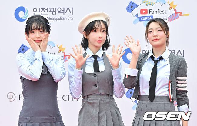 이날 레드카펫에서 히나가 불참한 가운데 QWER이 포즈를 취하고 있다. 2024.06.29 / soul1014@osen.co.kr