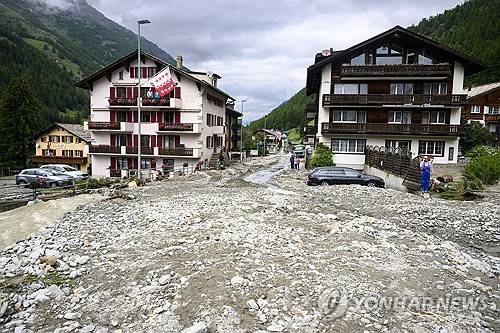 epa11447156 General view of rubble from a landslide following storms that caused major flooding in Saas-Grund, Switzerland, 30 June 2024. Massive thunderstorms and rainfall led to a flooding situation with large-scale landslides. EPA/JEAN-CHRISTOPHE BOTT