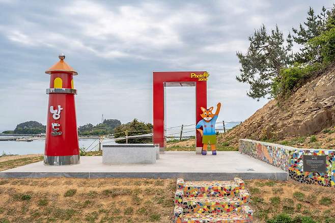낭도선착장에서 캠핑장과 장사금해변 방향으로 이어지는 도로는 해안가 절벽 위에서 멈춘다. 빨강 등대와 여우 조형물이 있는 사도 포토존이다. 이곳은 이미 오래전부터 사도의 모습을 가장 또렷하게 조망할 수 있는 장소로 알려져 왔다.