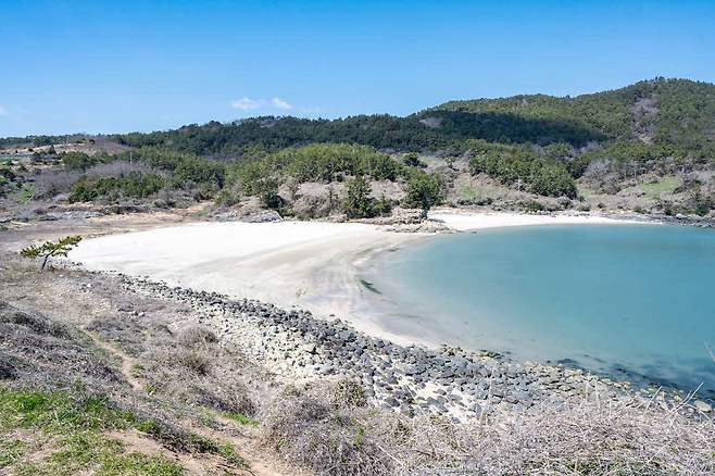 낭도해변에 비해 비교적 덜 알려진 프라이빗 해변이다. 갯바위를 사이에 두고 2곳으로 나뉘어 있는 해변은 아담하지만, 풍광이 매우 아름답다. 시설물이라고는 해변진입로에 조성된 돌담길이 전부다. 깊은 U자형의 해변은 잔잔하고 수위가 낮아 아이들과 함께 즐기기에 더욱 좋다.