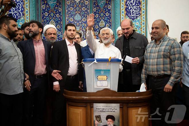 (테헤란 로이터=뉴스1) 조유리 기자 = 강경 보수파 대통령 후보 사이드 잘릴리가 6월 28일 (현지시간) 테헤란의 대선 투표소에서 투표하고 있다. 이번 보궐선거에서는 지난달 헬리콥터 추락 사고로 사망한 에브라힘 라이시 전 대통령의 후임자를 뽑는다. 2024.06.28/