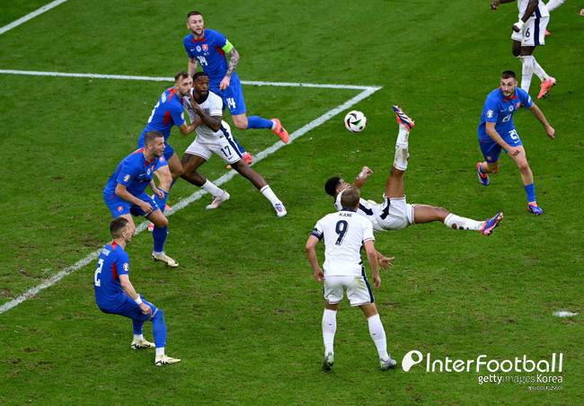 경기 종료 직전 기적이 일어났다. 후반 추가시간 5분 벨링엄이 문전에서 게히의 헤더를 환상적인 오버헤드킥으로 연결하며 슬로바키아 골망을 흔들었다. 연장전에 돌입한 잉글랜드는 연장 전반 1분 케인의 결승골에 힘입어 2-1로 경기를 마쳤다.