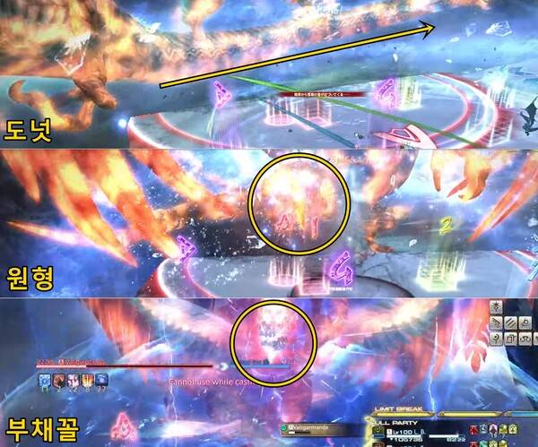 1. 처음 생성되는 거리반비례 AoE 장판 확인 → 장판의 맞은편으로 이동