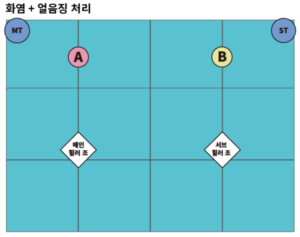 1. 탱커에게 얼음징, 힐러에게 불징 부여