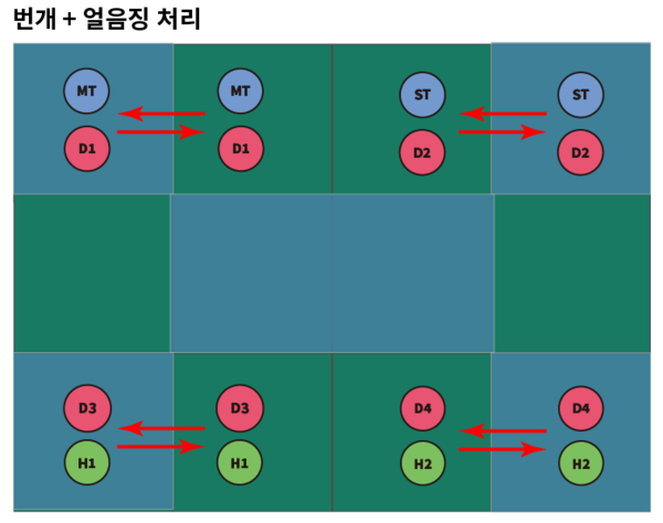 1. MT → ST 순서로 번갈아 기둥을 밟아가며 총 6번 진행 (탱커마다 3번씩)