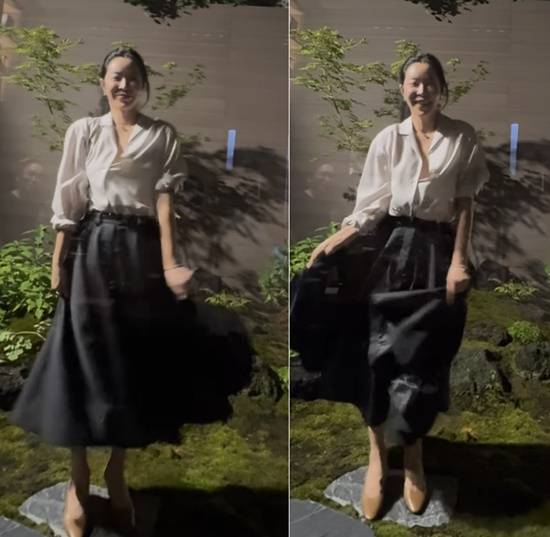 영상 속 이혜영은 블랙 스커트와 화이트 셔츠를 매치해 우아한 스타일링을 완성한 뒤 몸을 가볍게 흔드는 모습이다.