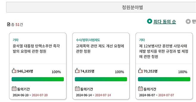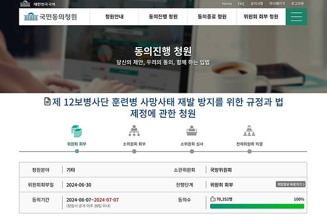 | ▲ 모병제추진시민연대의 국회 국민동의 청원이 전체 청원 중 3번째로 많은 시민의 동의를 얻었다. |