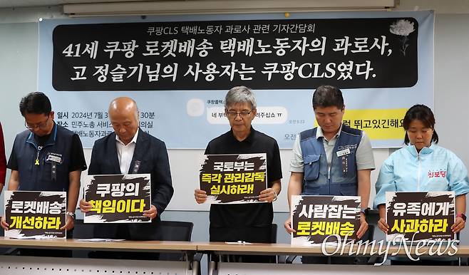 [오마이포토] "쿠팡 로켓배송 택배노동자 과로사, 쿠팡 책임이다"