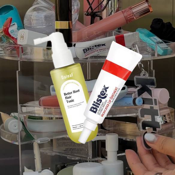 영상을 찍으면서 느낀 건데, 어렸을 때와 새삼 다른 결의 아이템들로 채워진 거 같아요. 예전에는 반짝이고 화려한 컬러의 아이템이 많았다면 지금은 두피 세럼, 항산화 세럼, 립밤, 아이브로우 등 기본에 충실한 제품들이 대부분이네요. 예쁘고 보기 좋은 아이템보다는 사용하기 편리해 손이 자주 가는 것들이에요.