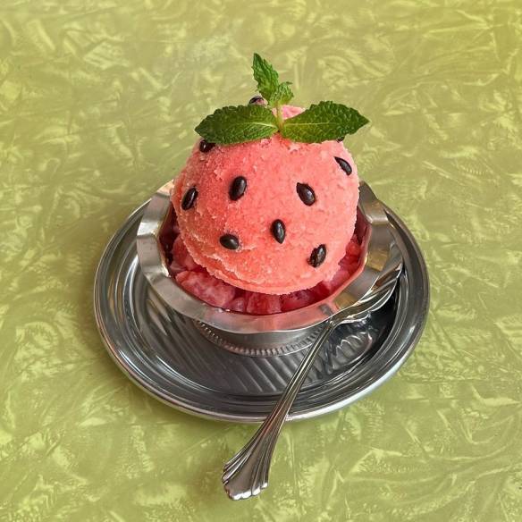 뼛속까지 시원해지는 수박 소르베? 에스파 뮤비 촬영지로도 유명한 ‘머메이드 레시피’에서는 다양한 수박 디저트를 판매 중이다. 특히 당도 높은 수박을 갈아 만든 수제 수박 소르베가 인기인데, 그릇 안쪽에 있는 수박 생과와 연유를 함께 떠먹으면 마치 수박 빙수를 먹는 듯하다.