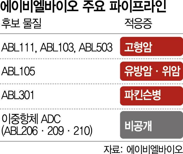 에이비엘바이오는 내년 미국에서 이중항체 ADC인 ABL-206, ABL-209, ABL-210의 임상 1상을 신청할 계획이다.