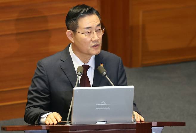 | ▲ 신원식 국방부 장관이 2일 오후 서울 여의도 국회에서 열린 정치·외교·통일·안보 분야 대정부질문에 출석해 의원 질의에 답변하고 있다. |