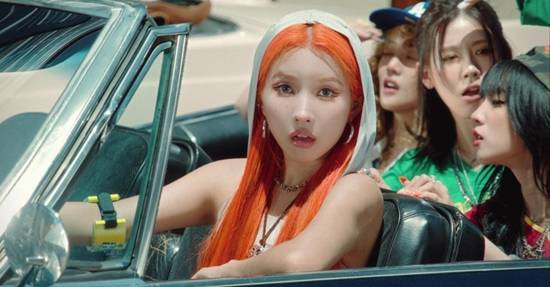 아이들은 소연의 오렌지 컬러 헤어를 비롯한 여름 패션으로 '클락션 (Klaxon)'에 어울리는 분위기를 전했다.