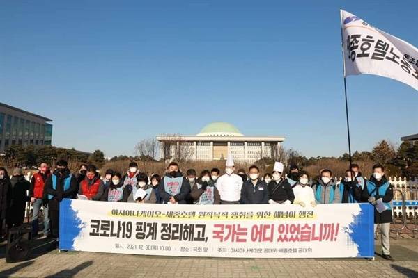 해고 당시 이 이상한 해고를 사회가 인정하지 않을 줄 알았다. 왜냐하면 메르스, 사스, 사드배치 때에도 일시적으로 관광객이 줄었다가 다시 회복했기 때문이다. 게다가 우리가 해고된 2021년 12월은 코로나 기세가 한풀 사그라들던 때라, 타 호텔은 슬슬 뷔페를 여는 등 본격적 영업을 준비하던 분위기였기 때문이다.