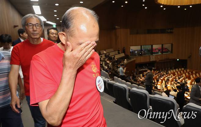 | ▲ 4일 오후 서울 여의도 국회에서 채상병 특검(순직 해병 수사 방해 및 사건 은폐 등의 진상규명을 위한 특별검사의 임명 등에 관한 법률안)이 재석 190인 중 찬성 189표, 반대 1표로 가결되자, 해병대예비역연대 회원들이 이를 지켜보며 기뻐하고 있다. |