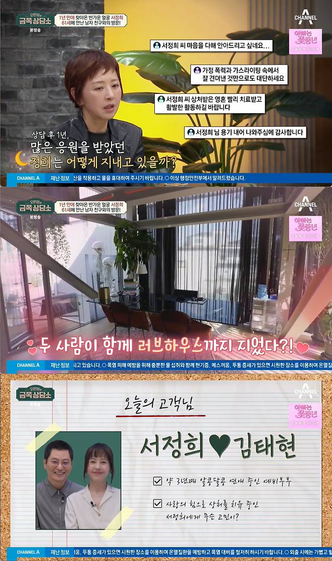 4일 방송된 채널A '오은영의 금쪽 상담소'에는 방송인 서정희, 건축가 김태현 커플이 방문했다.
