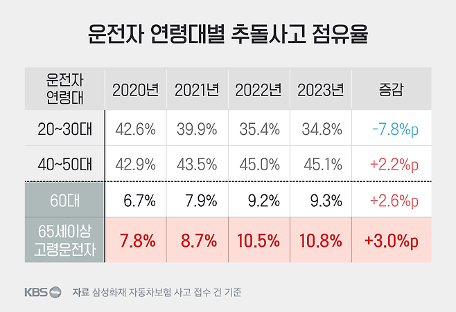 그래서 단순히 고령운전자 사고 건수만 보기보다 다른 연령대와 비교한 증가율에 주목할 필요가 있다는 지적이 나오는데요.