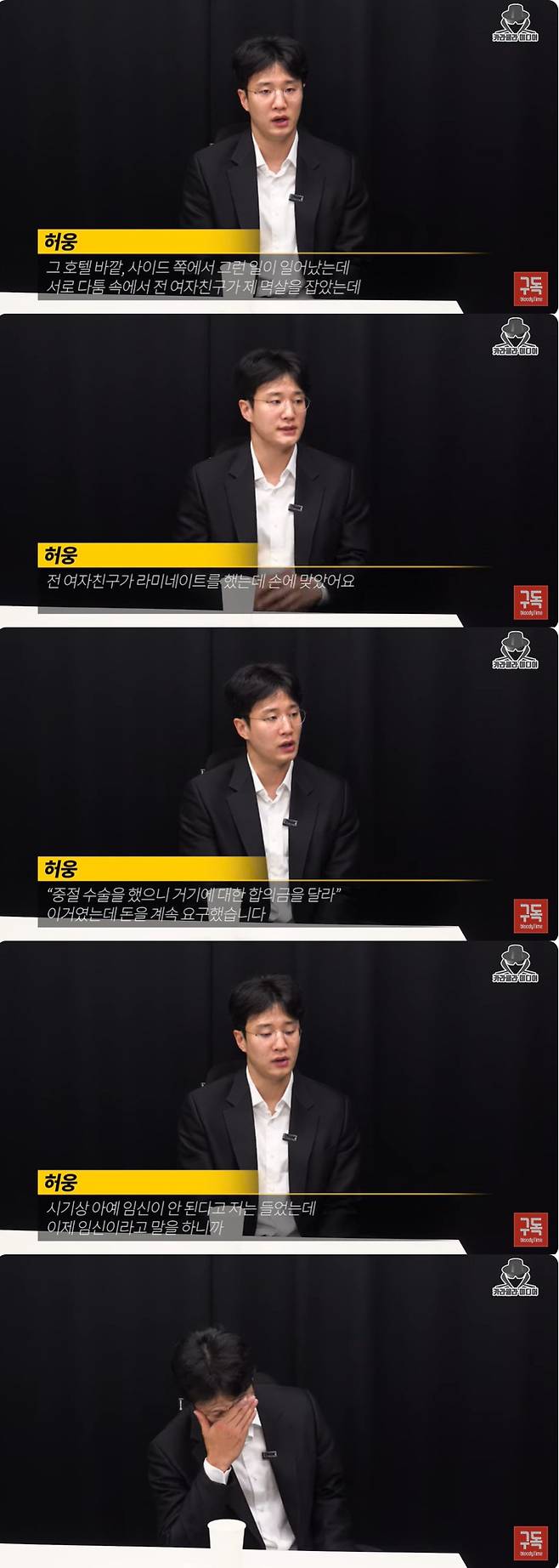 허웅은 "첫 번째 중절 수술 이후에도 협박을 했다. 항상 마지막은 돈을 요구했다. 처음에 협박을 해서 그게 안 되면 같은 농구 선수들한테 보내고 그게 안 되면 부모님한테 보내고. 그게 안 되면 기자한테 보낸다 하면서 협박의 강도가 세졌다"며 "중절수술을 했으니 거기에 대한 합의금을 달라는 거였는데 돈을 계속 요구했다. 돈은 안 줬고 수술비용은 제가 다 냈다"고 밝혔다.