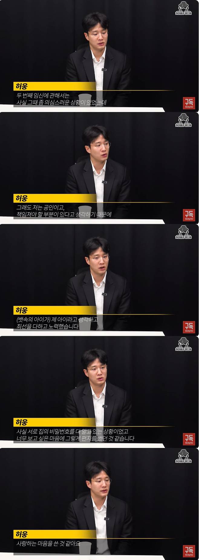 허웅은 임신중절은 자신의 강요가 절대 아니었다며 "두 번째 임신에 관해서는 그때 좀 의심스러운 상황이 있었다. 하지만 저는 공인이고 책임져야 할 부분이 있다고 생각하기 때문에 제 아이라 생각하고 최선을 다하려고 노력했다"고 밝혔다.