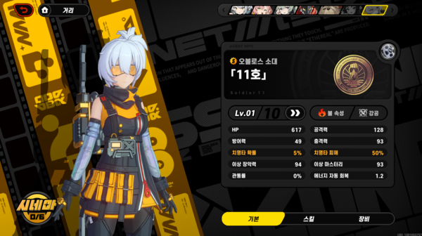 속성은 타 게임이 가진 시스템을 그대로 떠올리면 된다. 물리, 불, 얼음, 전기, 에테르 총 5가지다. 속성 옆에는 해당 캐릭터 역할군이 표시된다. 강공, 격파, 방어, 이상, 지원으로 총 5가지가 존재한다.