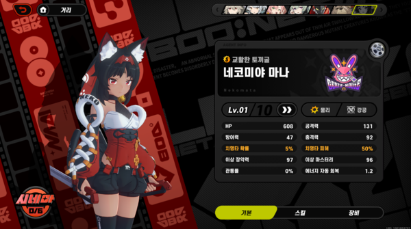 네코미야 마나(물리/강공) + 엔비(전기/격파) + 니콜(에테르/지원)