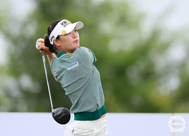 (서울=연합뉴스) 방신실이 5일 인천 서구 베어즈베스트 청라GC에서 열린 '롯데 오픈' 2라운드 11번 홀에서 티샷하고 있다. 2024.7.5 [KLPGT 제공. 재판매 및 DB 금지]