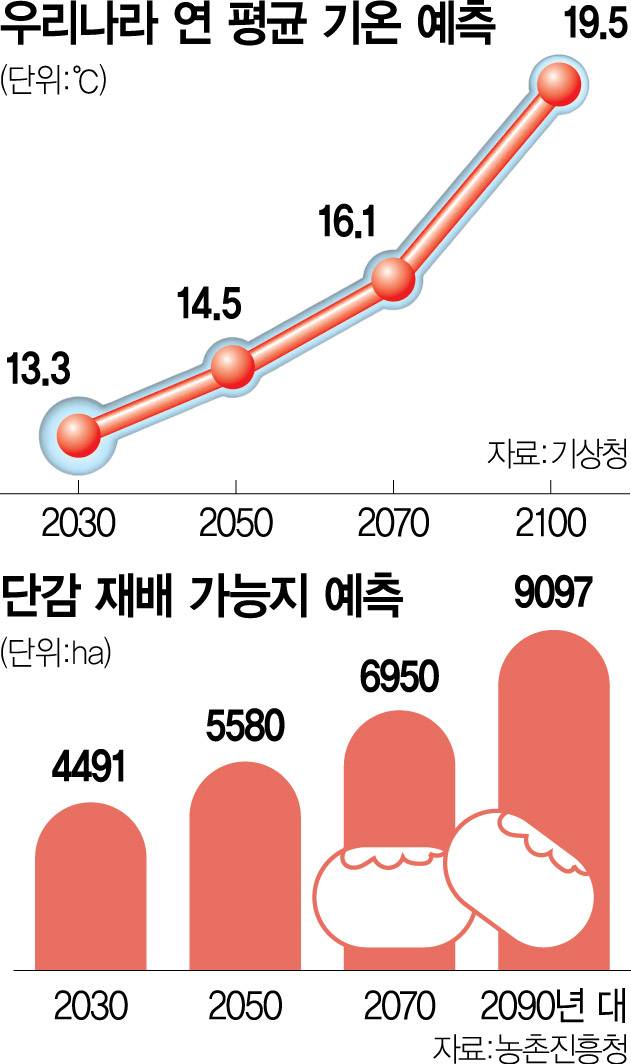 기온 상승에 과수 재배지 변화