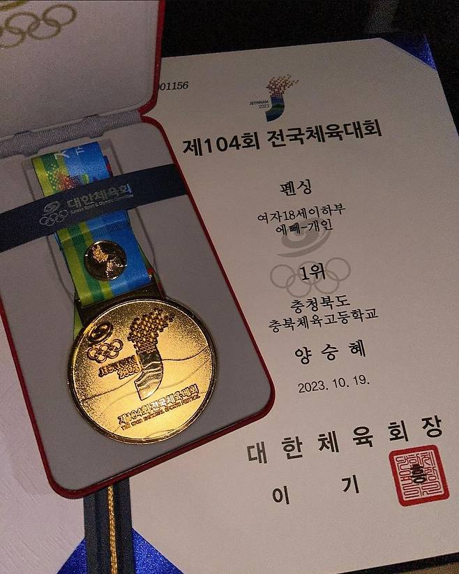 운동 선수라면 꿈에 그리는 전국제육대회 금메달 역시 지난해 거머쥐었다. 지난해 10월 열린 제104회 전국체육대회 여자 18세 이하(U-18) 에페 개인전 금메달을 목에 건 적이 있기 때문이다.