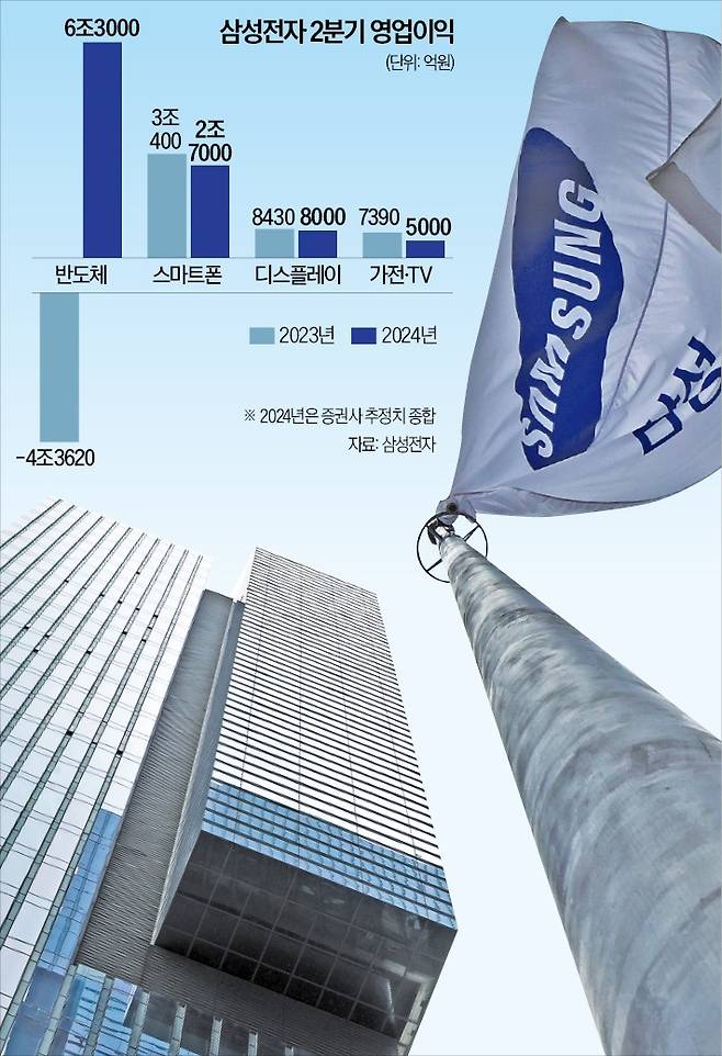 HBM과 파운드리(반도체 수탁생산) 분야에서 고전하고 있는 삼성전자가 지난 2분기 ‘깜짝 실적’을 낸 배경이다. 시장에선 삼성전자 영업이익이 3분기부터 더 가파른 오름세를 탈 것으로 예상하고 있다. 일반 D램과 낸드 수요가 한층 더 늘고 있는 데다 엔비디아에 최신 HBM 제품인 ‘HBM3E’를 납품할 가능성도 높아지고 있어서다.