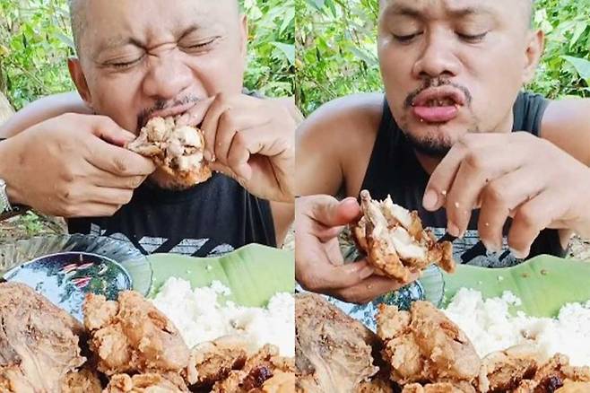 팔로워 45만 명을 보유한 필리핀 먹방 유명인 동즈 아파탄은 치킨을 먹는 영상을 올렸다.