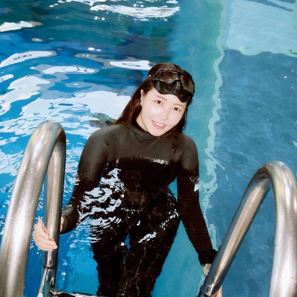 A : 5년 차 프리다이빙 강사이자 아시아에서 가장 깊은 풀장을 보유한 이곳, 딥스테이션의 앰배서더.