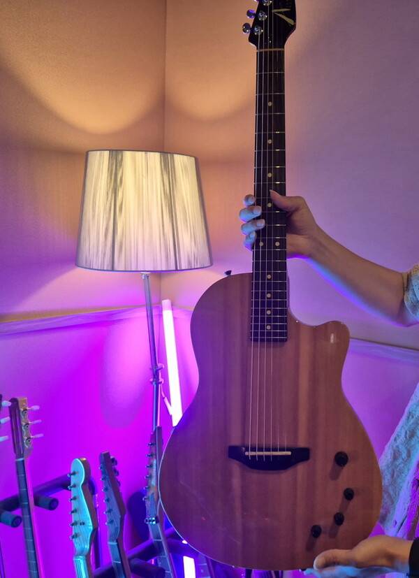 "샤도스키는 운 좋게도 중고장터에서 매우 '착한 가격'에 샀습니다. 일렉트릭 나일론 기타라는 게 특히 매력적이죠. 라인 녹음으로 바로 작업해도 특유의 느낌이 너무 좋아 (수정 없이) 음원으로 발매해도 좋을 정도로 퀄리티가 좋습니다."