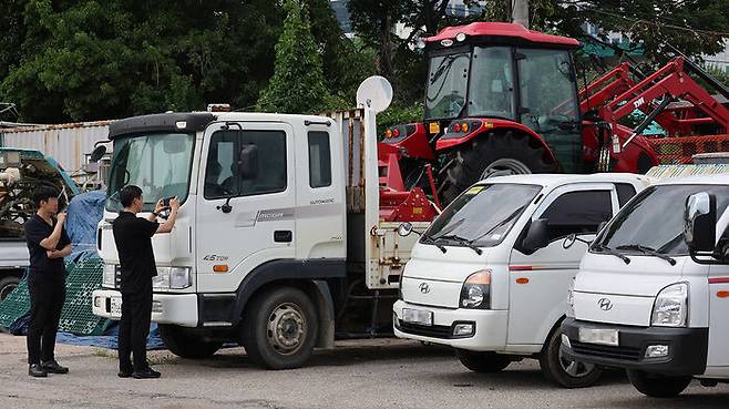 ▲ 전국농민대회 참가자들이 두고 간 농기계