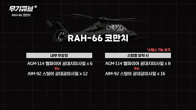 무엇보다 스텔스 기능 구현에 진심이었던 헬기였습니다.