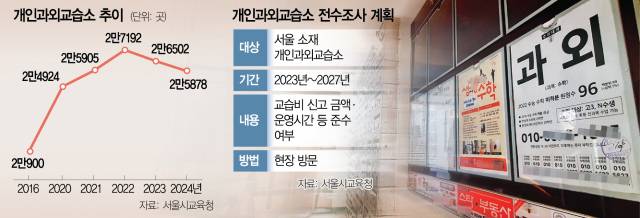 서울시교육청은 전수조사 2년차인 올해는 개인과외교습소 점검 대상을 확대할 방침이다. 이미 현장점검은 지난달부터 시작됐으며, 서울시교육청은 올해 총 4달에 걸쳐 조사를 진행할 계획이다. 올해 점검비율 목표치는 25%다.